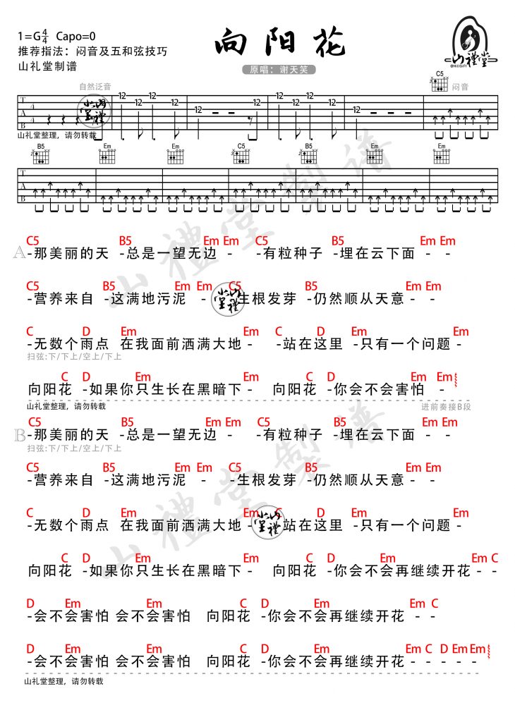 谢天笑《向阳花》歌词